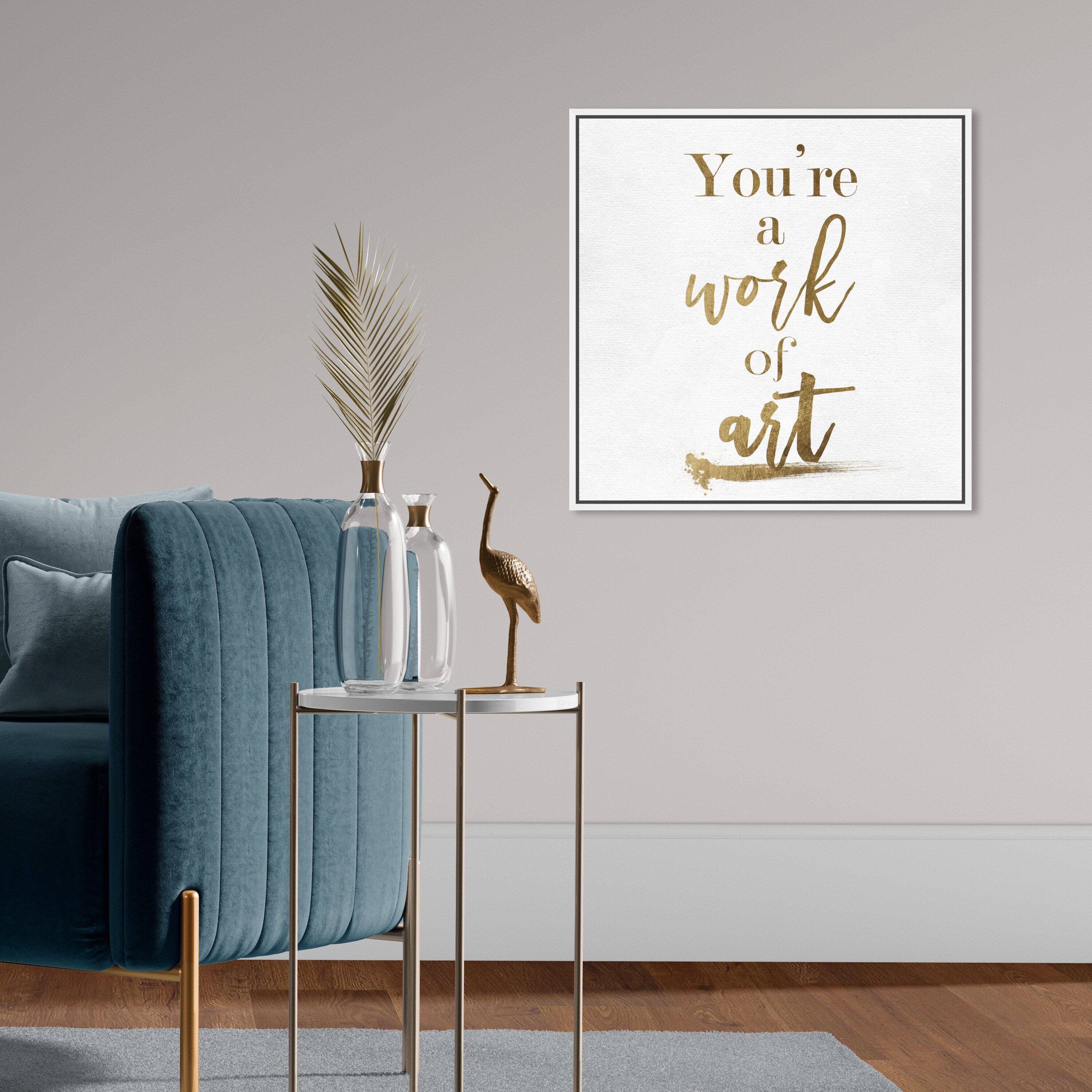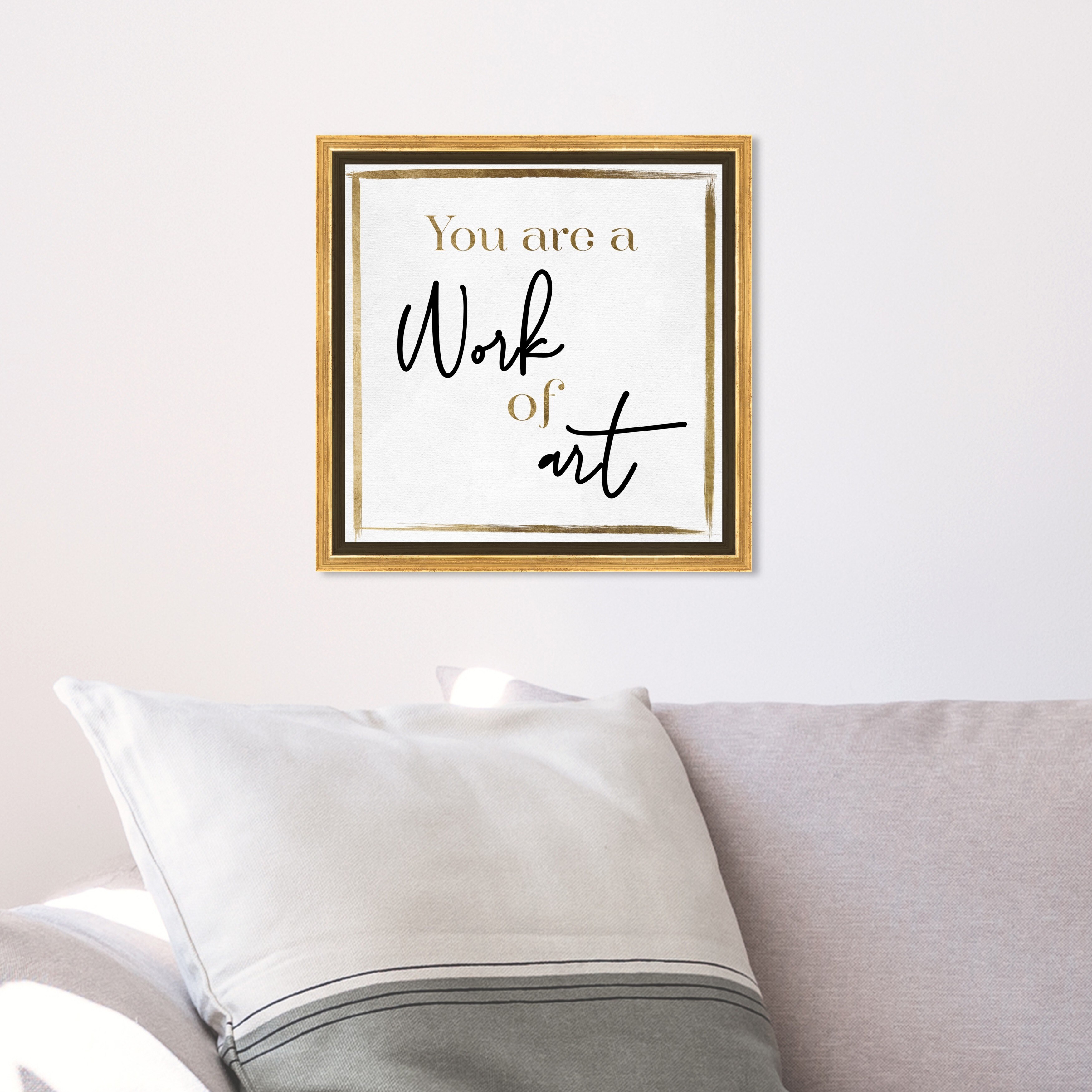 Oliver Gal 'Work of Art II' Typography and Quotes Wall Art Framed Canvas Print Empowered Women Quotes and Sayings - Gold, White