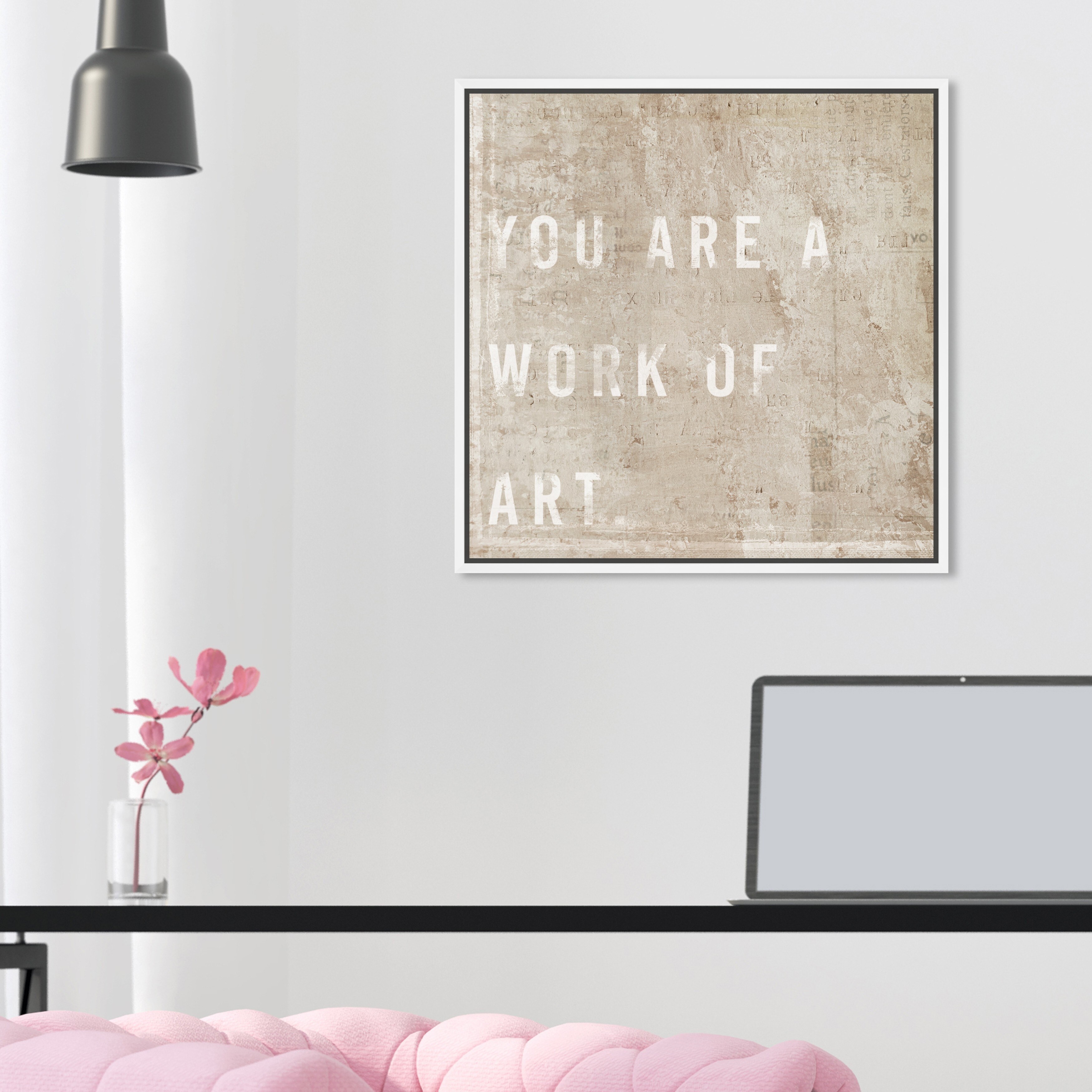 Oliver Gal 'Work of Art' Typography and Quotes Wall Art Framed Canvas Print Beauty Quotes and Sayings - Brown, White