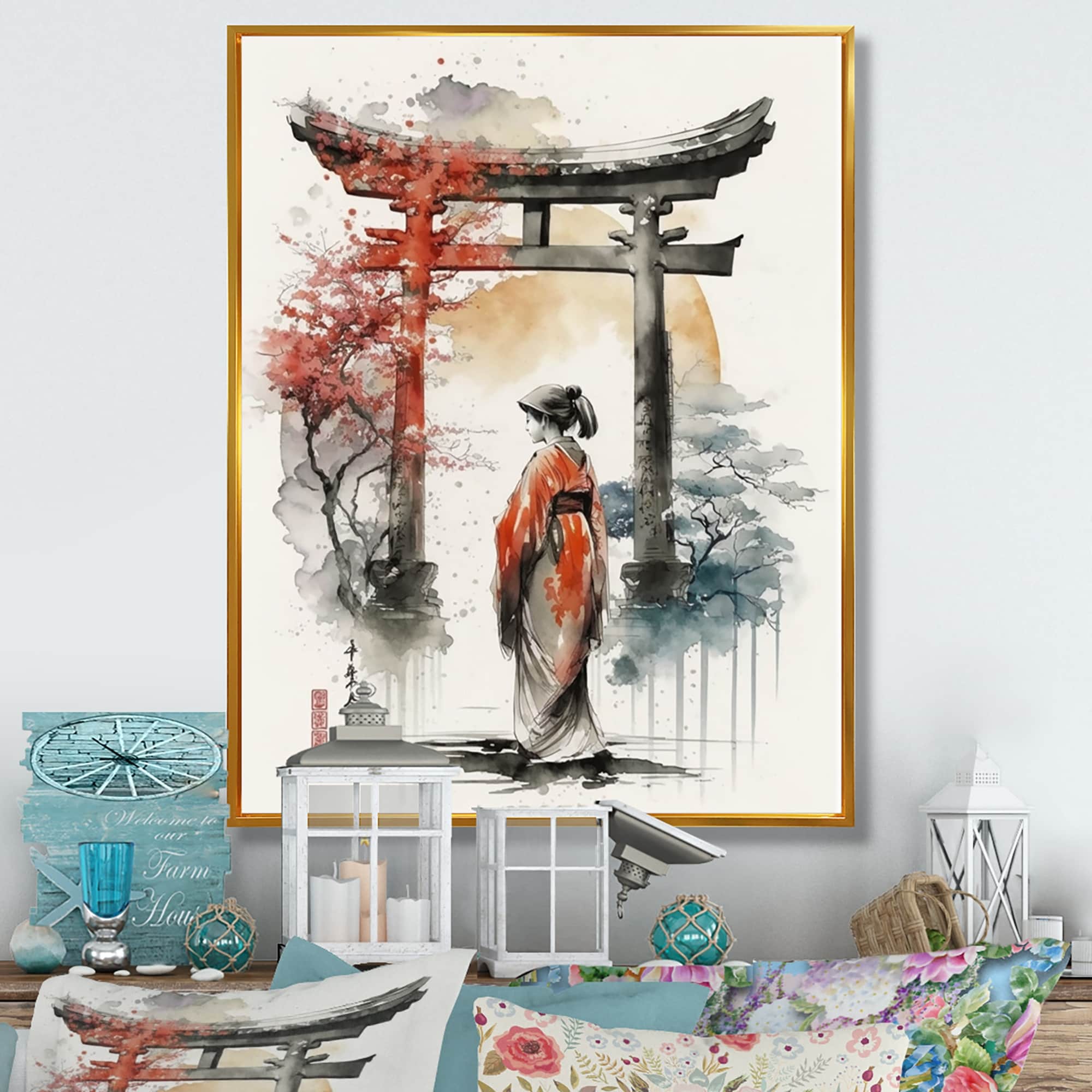Designart "Asian Female I" Japon Landscape Framed Canvas Art Print