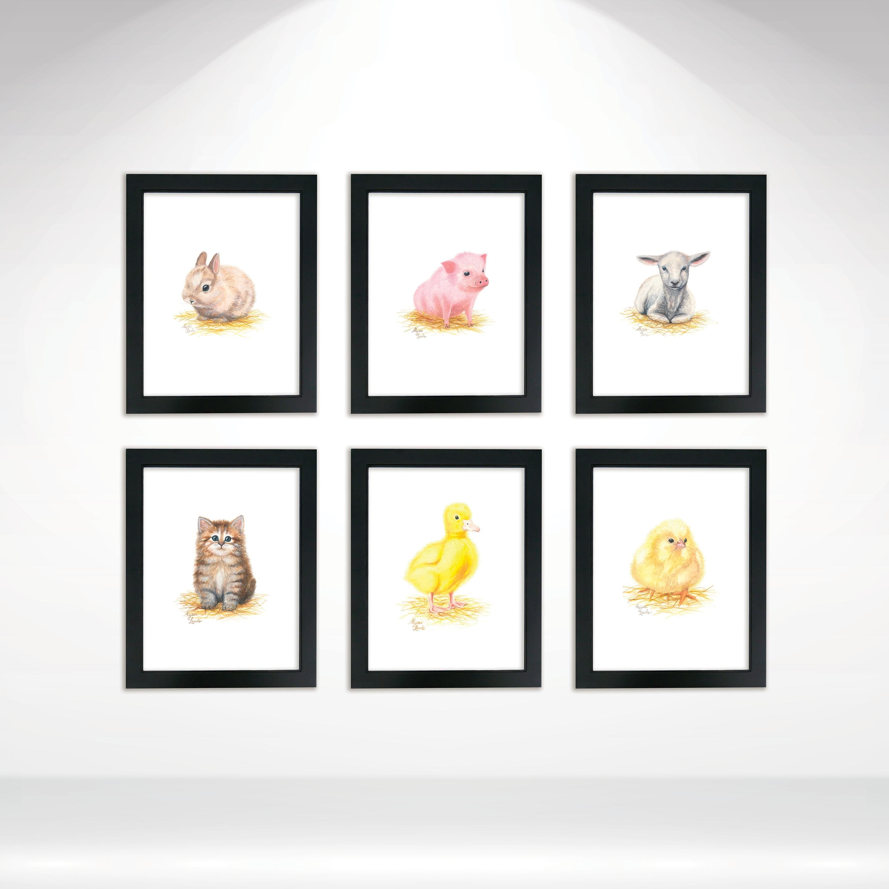 "Barnyard Littles" - Set of Six Framed Prints - Black - 16" x 20" - Multi-Color