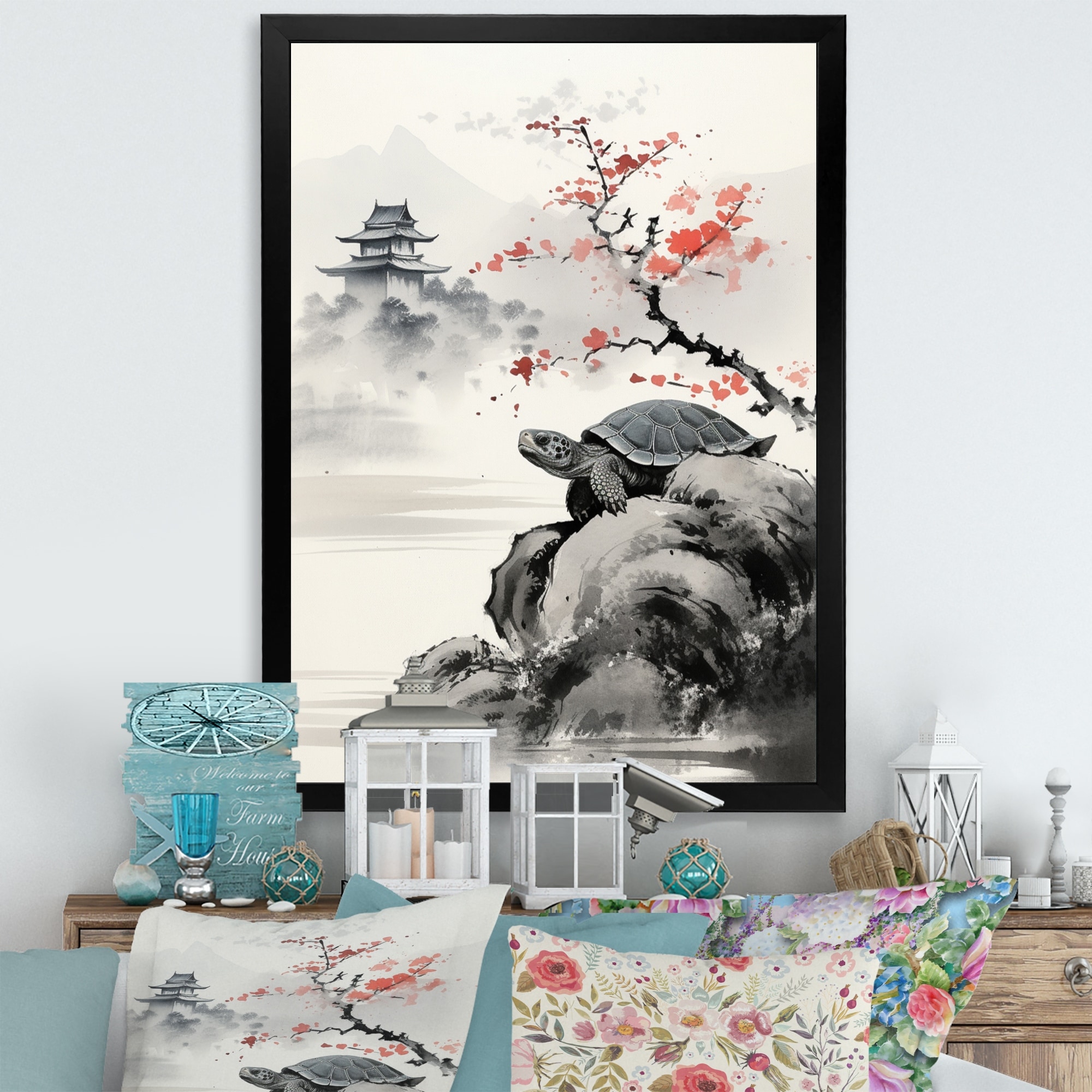 Designart "Asian Art Turtle Sumi II" Asian Art Framed Canvas Prints