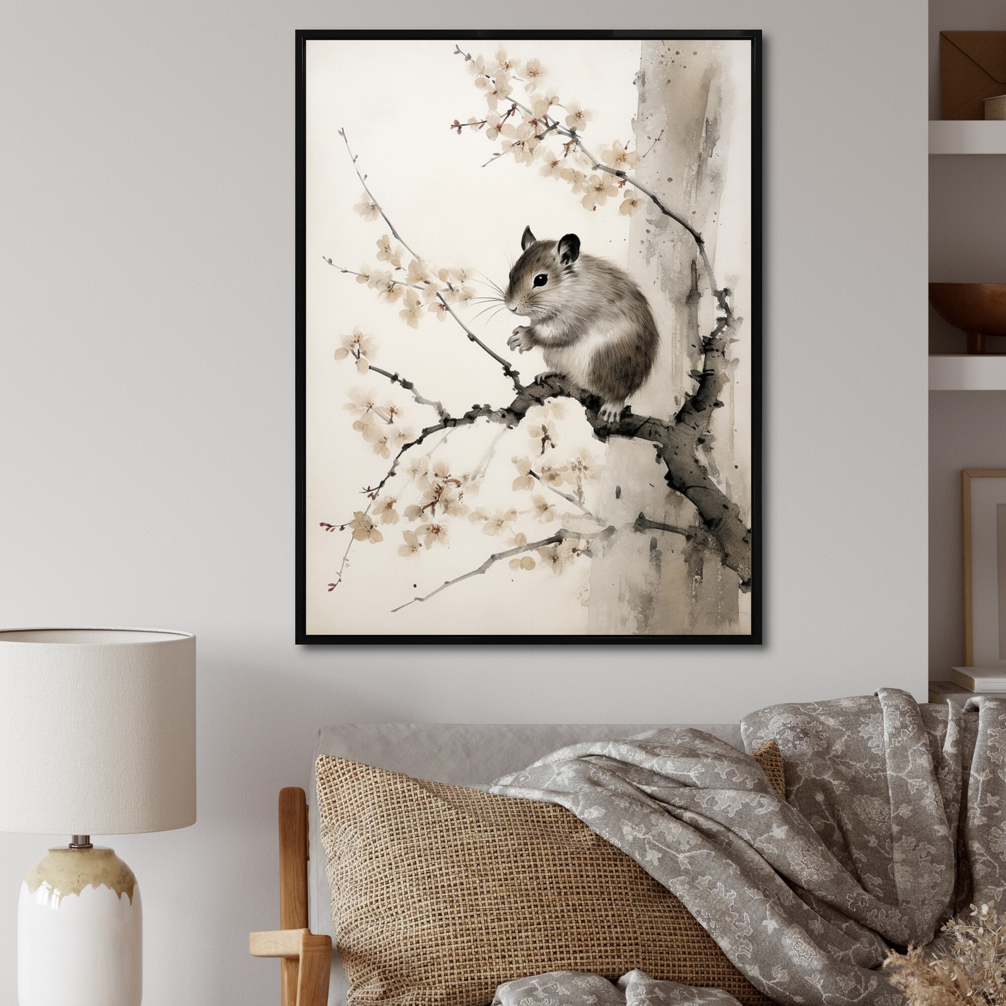 Designart "Asian Art Rodent Sumi I" Asian Art Framed Canvas Print
