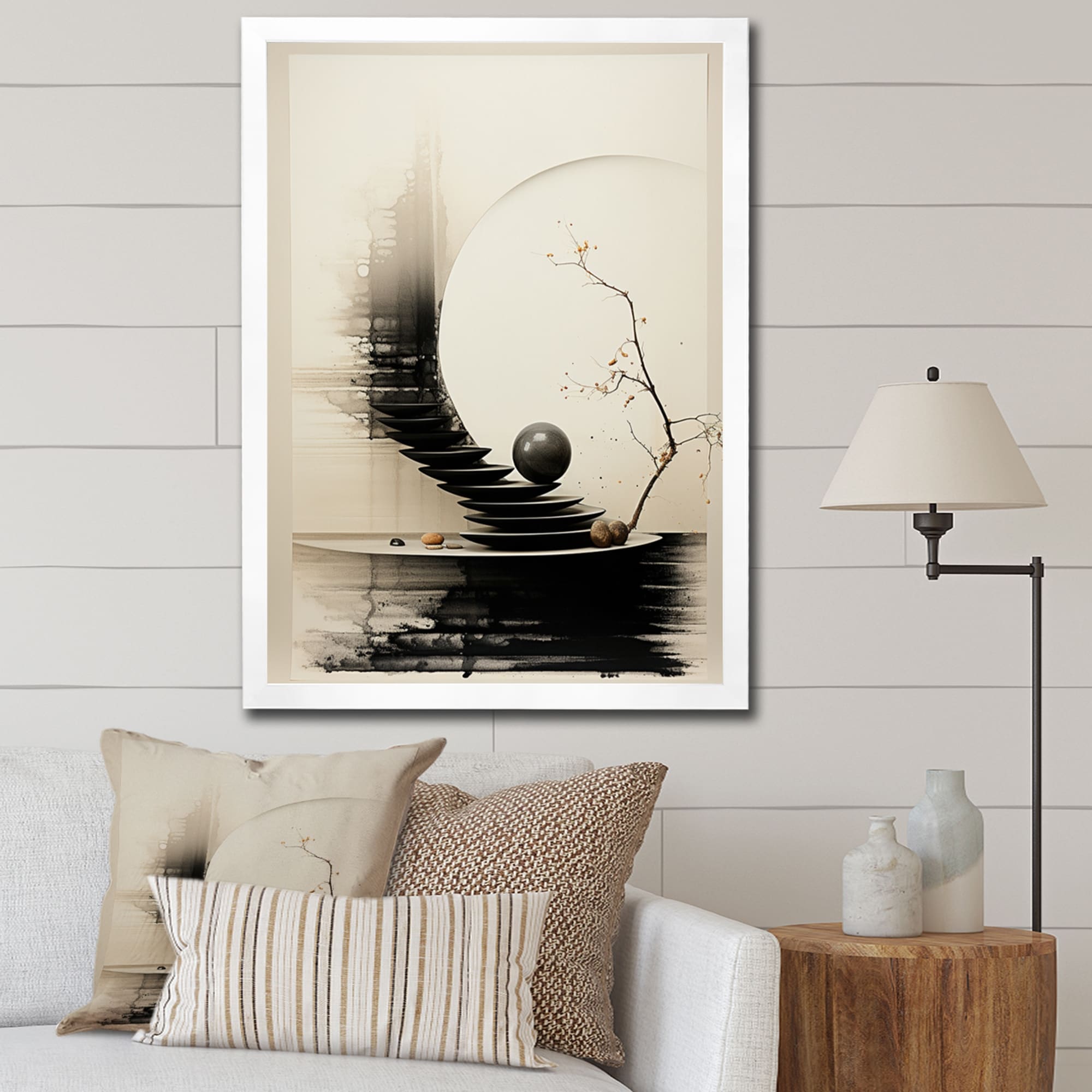 Wynwood Studio World and Countries Framed Wall Art Prints 'Ink Zen' Asian Cultures Home Décor - Black, White