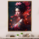 Designart "Female Asian Floral Warriors Ii" Asian Woman Framed Canvas Wall Art