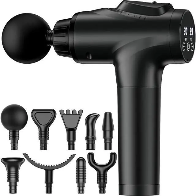 Eyesoul Massage Gun, Muscle Massage Gun for Athletes Handheld Electric Deep Tissue Back Massager, Percussion Massage Device for Pain Relief with 30 Speed Levels 9 Heads Black pcs