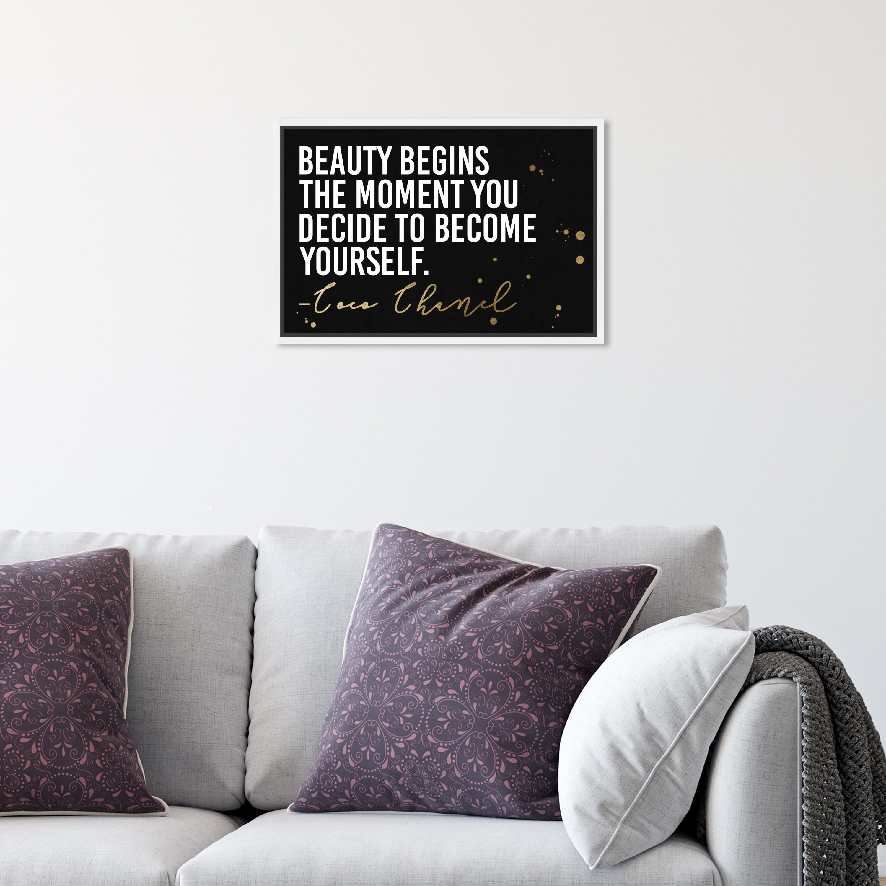 Oliver Gal 'Become Yourself' Typography and Quotes Wall Art Framed Canvas Print Beauty Quotes and Sayings - Black, White