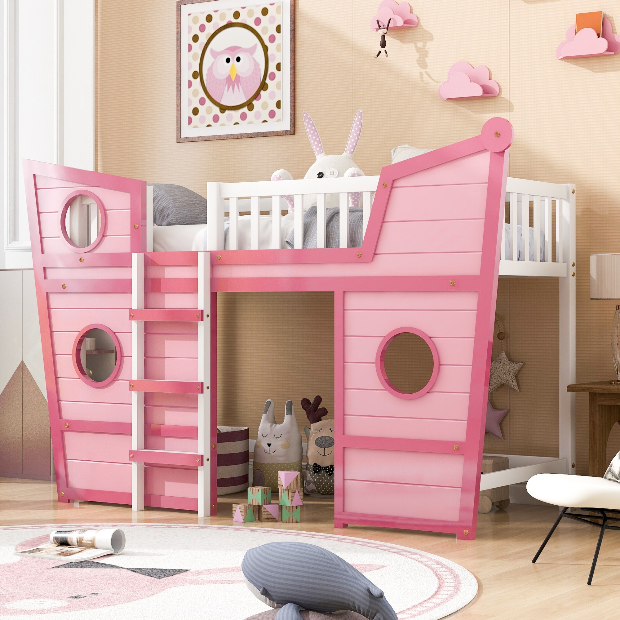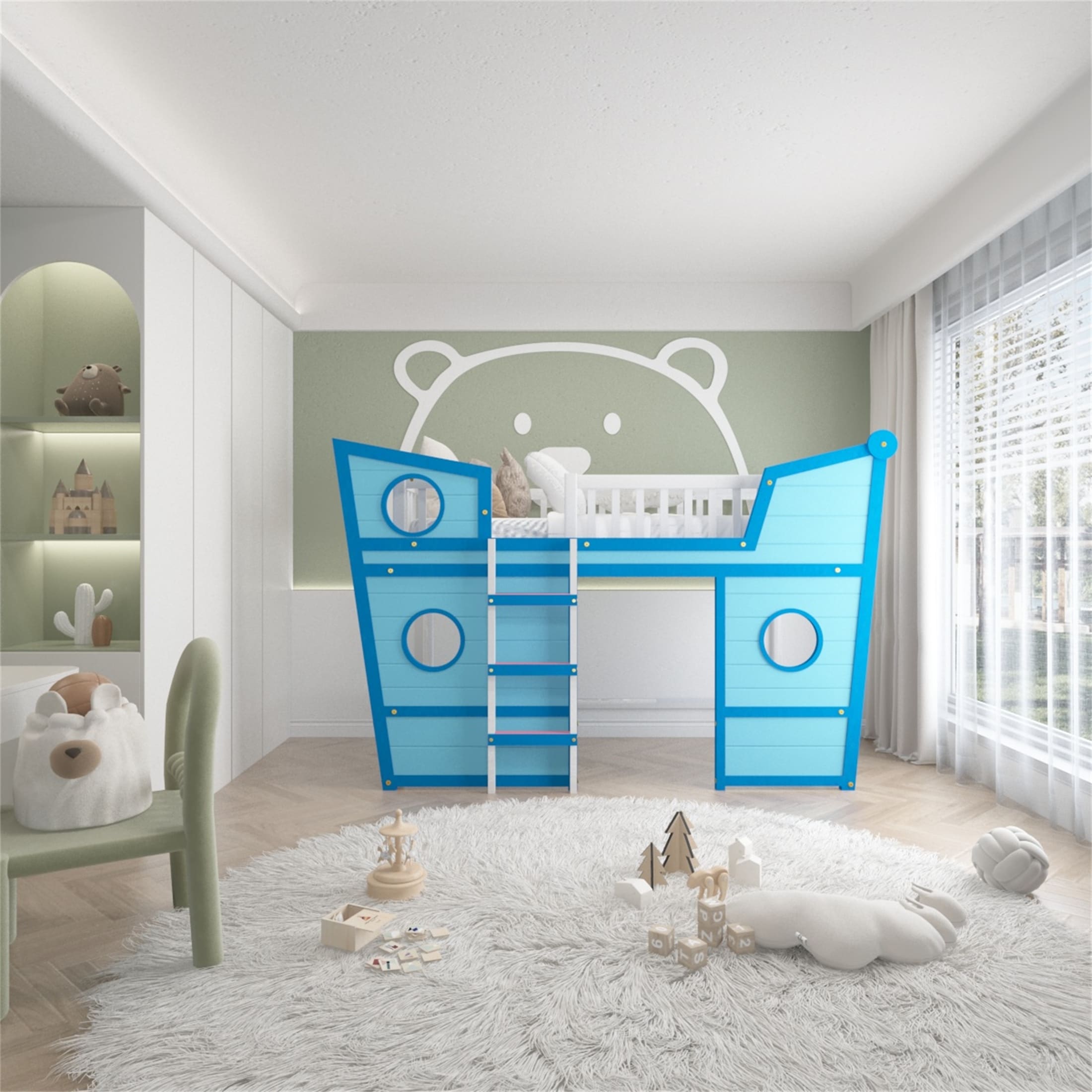 Twin Size Boat Shape Loft Bed with Ladder