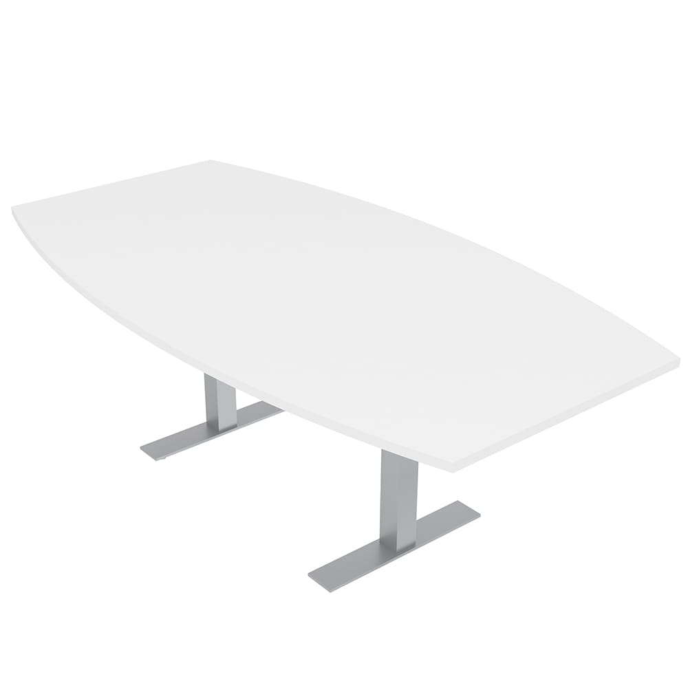 96W x 42D Boat Shaped Conference Table with Metal Base in Storm Gray