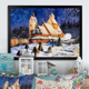 Designart "Fishing Boat Lake in River" Cabin & Lodge Framed Wall Art