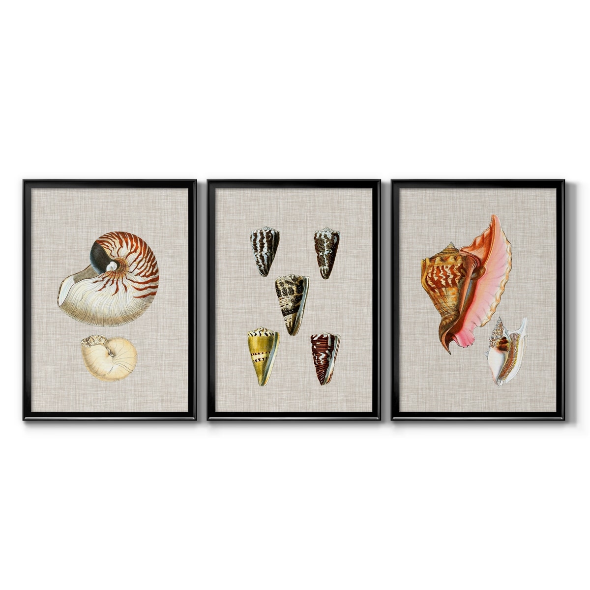 Antique Shells on Linen VII Premium Framed Canvas - Ready to Hang - Multi-Color