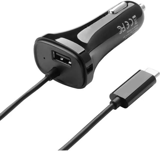 Dual-port USB Car Charger With PD Charging - USB Type C (27W) & USB Type A (5V 1
