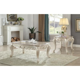 Wooden Coffee Table with Decorative Polyresin Carvings and Marble Top, White