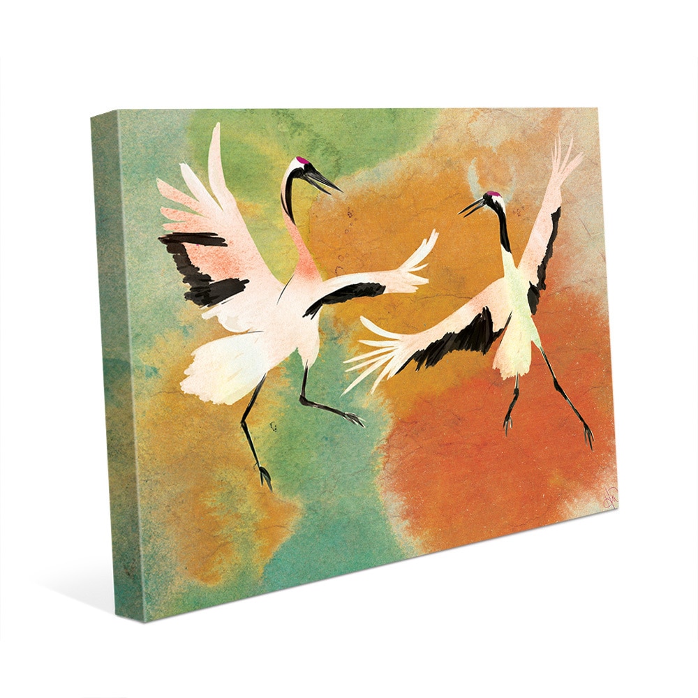'Dancing Cranes on Chartreuse' Canvas Wall Art
