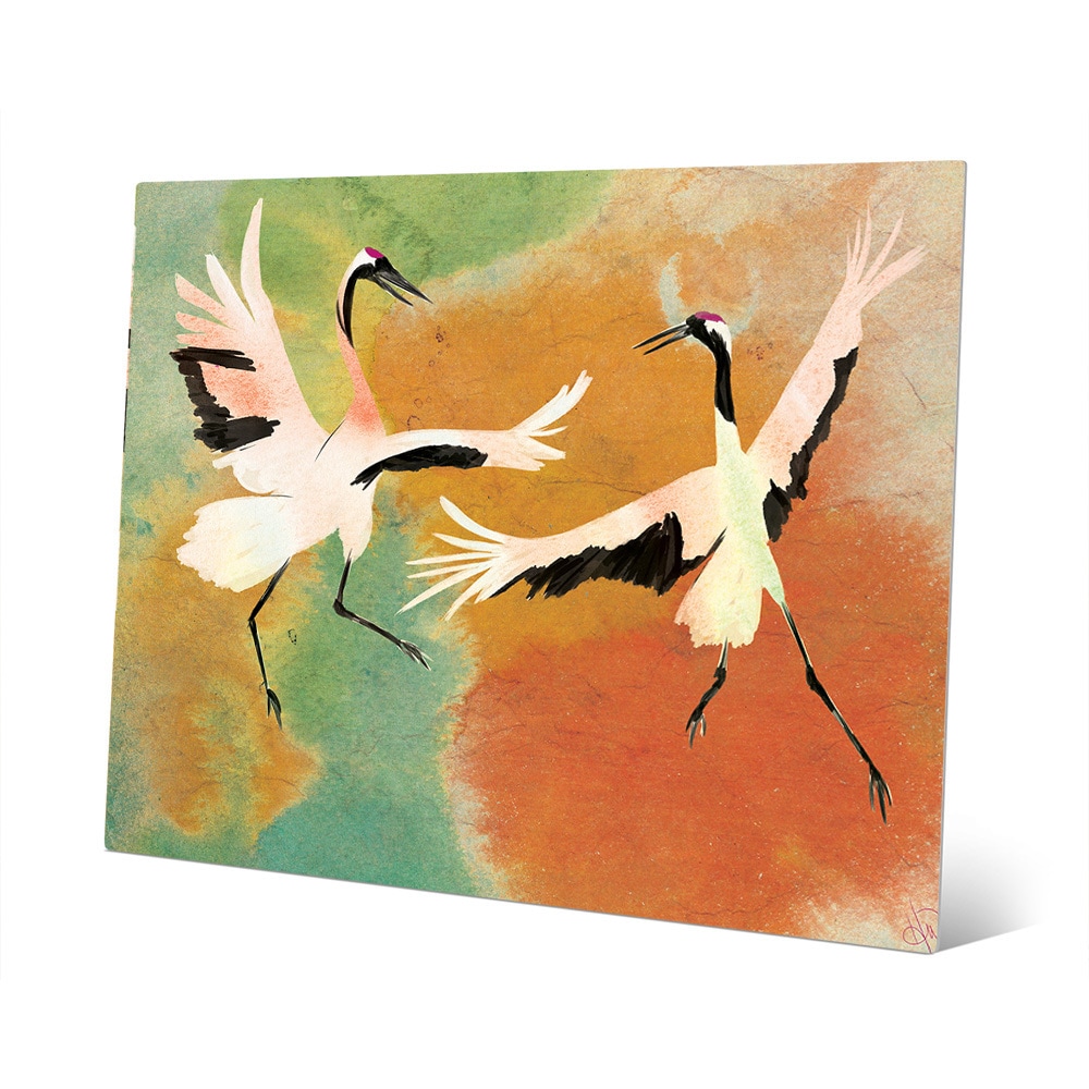 Dancing Cranes in Chartreuse Wall Art on Metal