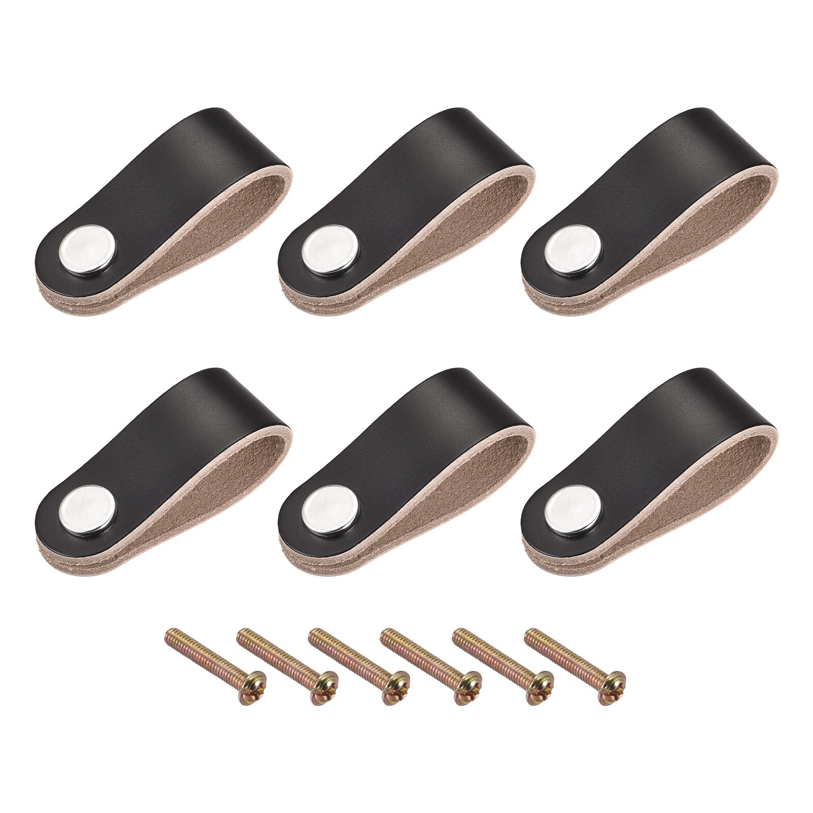 Drawer Knobs, 2.56" 6Pcs Leather Dresser Handle Door Pulls Cupboard Pull, Black