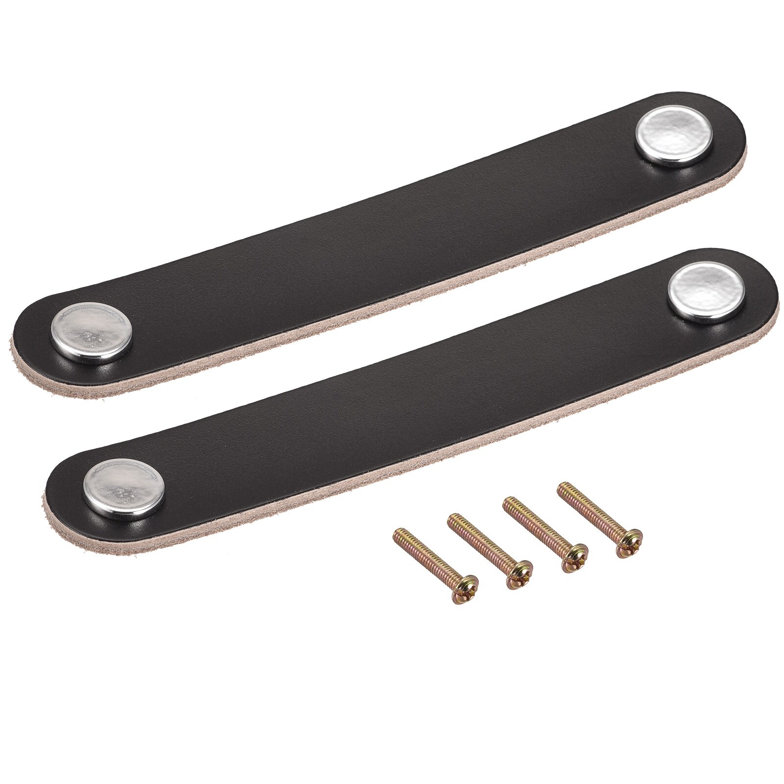 Drawer Pulls, 6.69" 2Pcs Leather Dresser Handles Door Knobs Cupboard Pull, Black