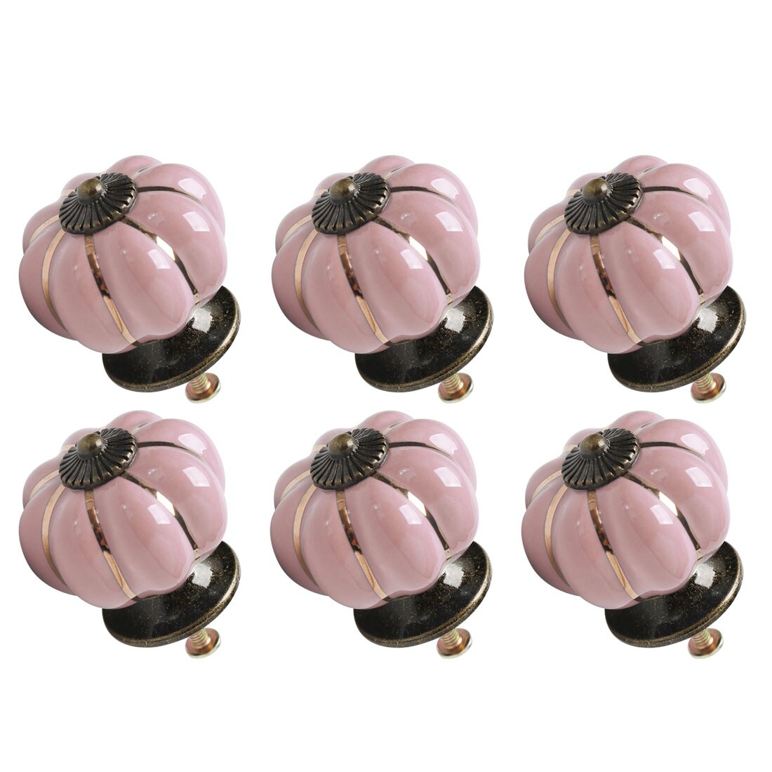 Ceramic Vintage Knob Drawer Dresser Pumpkin Handle Cupboard 6pcs - Pink - 1.57" x 1.5" (D*H)