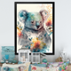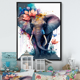 Designart "Cute Elefant Floral Art I" Animals Framed Canvas Art Print