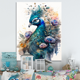 Designart 'Cute Peacock Floral Art II' Animals Canvas Wall Art