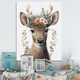 Designart 'Cute Baby Caribou With Floral Crown I' Animals Caribou Metal Wall Art