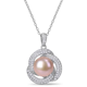 Miadora Sterling Silver Pink Cultured FW Pearl and CZ Swirl Halo Necklace (10-11 mm)