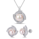 Miadora Sterling Silver Pink Cultured FW Pearl and CZ Swirl Halo Earrings (10-11 mm)
