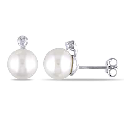 Miadora 14k White Gold Cultured Freshwater Pearl and 1/2ct TDW Diamond Earrings (G-H, SI1-SI2) (12.5-13 mm)