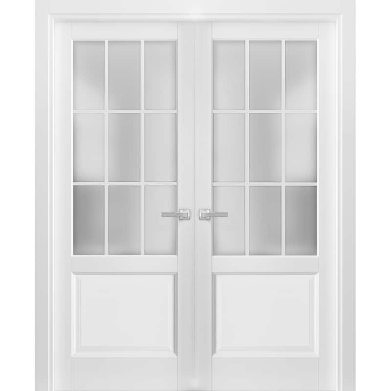 Solid French Double Doors Frosted Glass 9 Lites / Felicia 3309 White