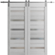 Sturdy Double Barn Door 36 x 80 inches with | Veregio 7588 Cognac Oak with Black Glass