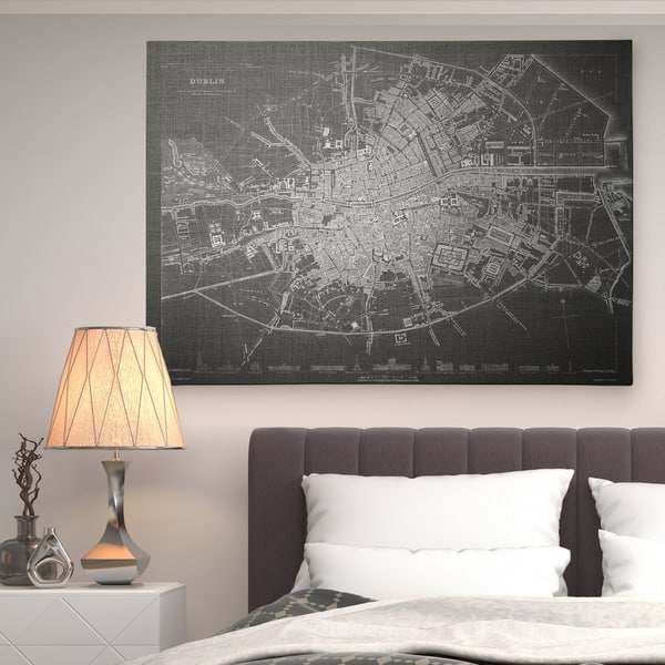 Stupell Industries Dublin Coastal City Map Bridges Buildings Design Canvas Wall Art - Blue