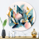 Designart "Pink Embracing Emptiness on Blue I" Minimalism Metal Round Wall Art