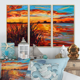 Designart "Sunset Evening Glow At the Lake I" Nautical & Coastal Framed Art Set of 3 - 4 Colors of Frames