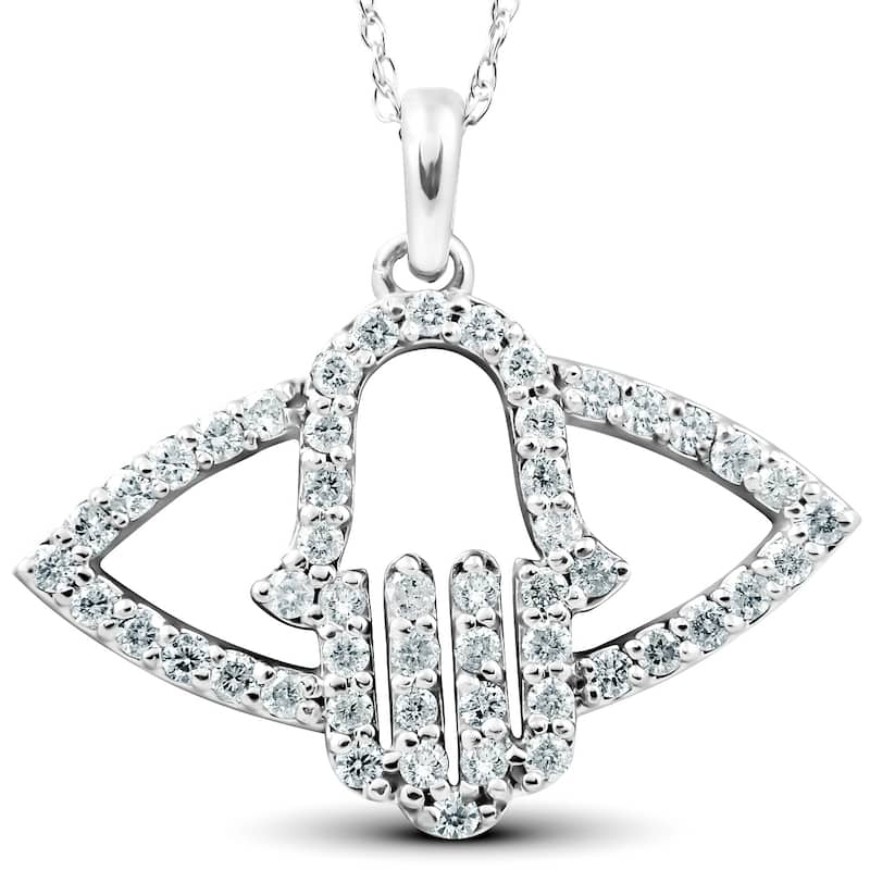 1/2 Ct Diamond Hamsa Evil Eye Hand Pendant 14k White Gold