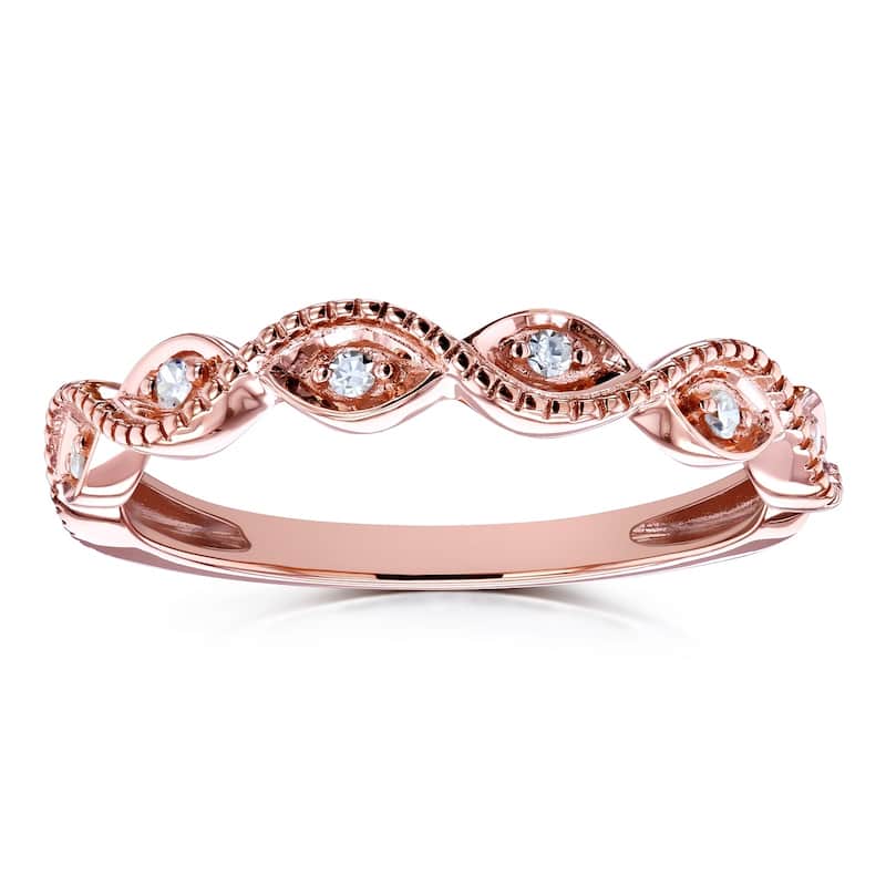Annello by Kobelli 10k Rose Gold 1/10ct TDW Quad Cluster Diamond Pattern Slender Fashion Band