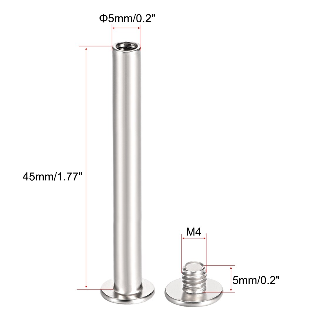 M5x16mm Hollow Screw Bolts Hexagon Fasteners with Nuts Stainless Steel - Silver Tone