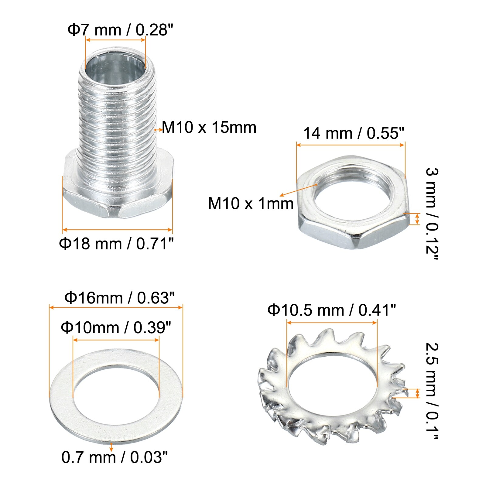 100pcs M10 Thread Hex Hollow Screw Bolts Hollow Bolt Lamp Fasteners