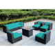 Ohana 10 Piece Black Wicker Patio Sectional Set with Fire Table