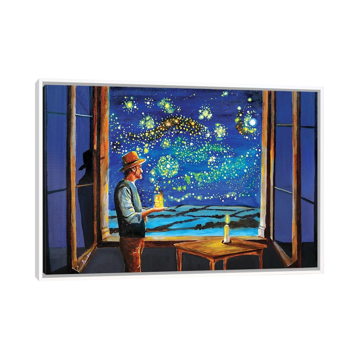 iCanvas "Van Gogh Starry Night With Fireflies" by Gordon Bruce Framed Canvas Print
