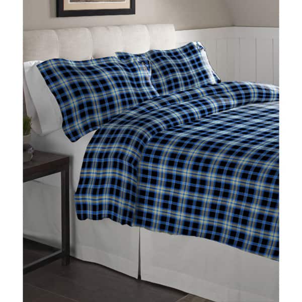 Pointehaven Ashby Plaid Cotton Flannel Oversized Duvet Set - Multi-color