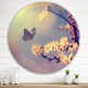 Designart 'Vintage Butterfly Flying to A White Flower' Traditional Metal Circle Wall Art