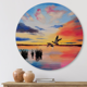 Designart 'Cranes Flying During Colorful Sunset' Nautical & Coastal Metal Circle Wall Art
