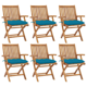 vidaXL Folding Patio Chairs with Cushions 6 pcs Solid Teak Wood - 22" x 22.8" x 34.6"