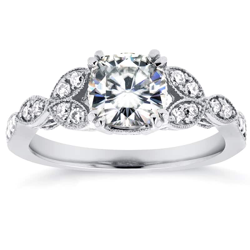 Annello by Kobelli 14k White Gold 1 1/10ct Cushion Forever Moissanite and 1/5ct TDW Diamond Floral A