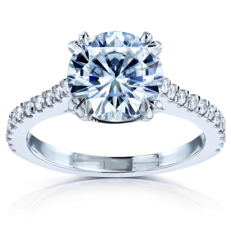 Annello by Kobelli 14k Gold 3 5/8ct TGW Round Forever One Moissanite and Diamond Halo Split Shank Engagement Ring