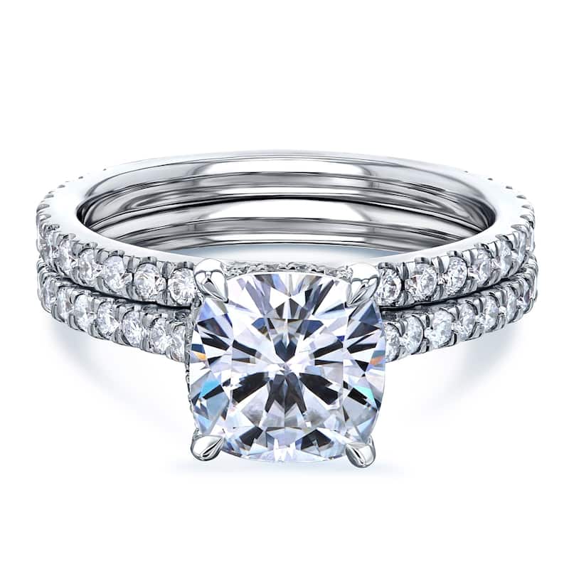 Annello by Kobelli 14k White Gold 2 4/5ct TGW Forever One DEF Moissanite and Diamond Channel Milgrain Vintage Bridal Set