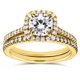 Annello by Kobelli 14k Yellow Gold 1 1/2ct TCW Forever One Colorless (DEF) Moissanite and Diamond Bridal Rings Set