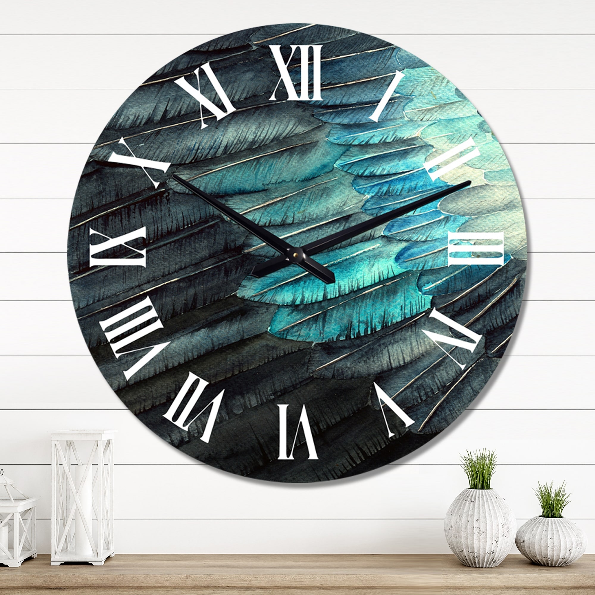 Designart 'Blue Fragment of a Bird Wing II' Traditional wall clock