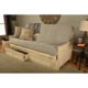 Somette Phoenix Futon Set in Antique White Wood with Innerspring Mattress and Storage Drawers