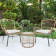 3 Piece Outdoor Wicker Patio Set with Glass Top Table and Soft Cushion