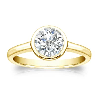 Auriya 18k Gold 1ctw Bezel Solitaire Diamond Engagement Ring Certified (I-J, SI1-SI2)